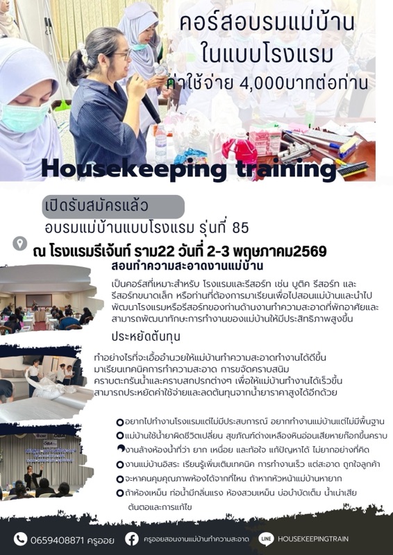 ติดต่ออบรม ไลน์ไอดี housekeepingtrain